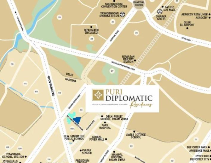 Investors of this blissful project will be situated in sector-111, Dwarka Expressway, a highly joyous destination to invest in!! Puri Diplomatic Residences grants the golden opportunity to choose an ideal unit from a rich range of 3 and 4-BHK residences.